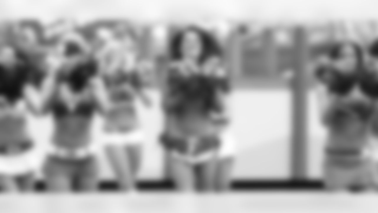 Denver Broncos Cheerleader Tara gets the crowd ready for kickoff.