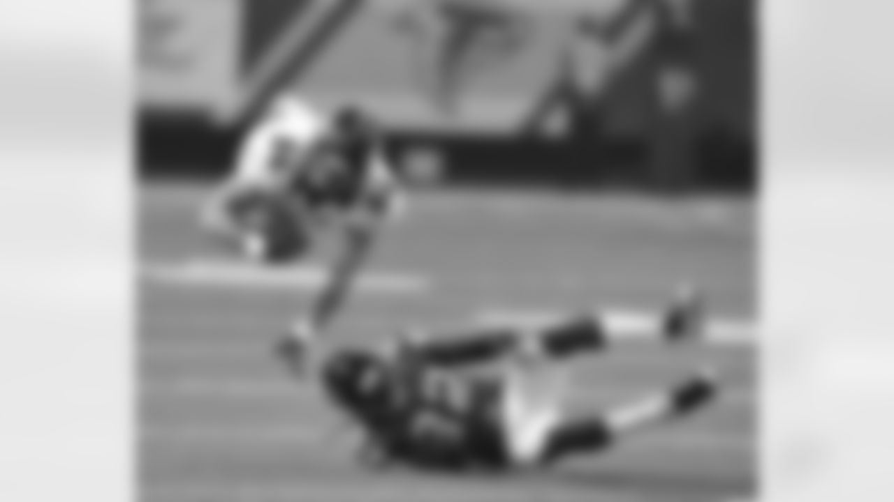 S Mike Adams makes a tackle during first half action against the Atlanta Falcons.