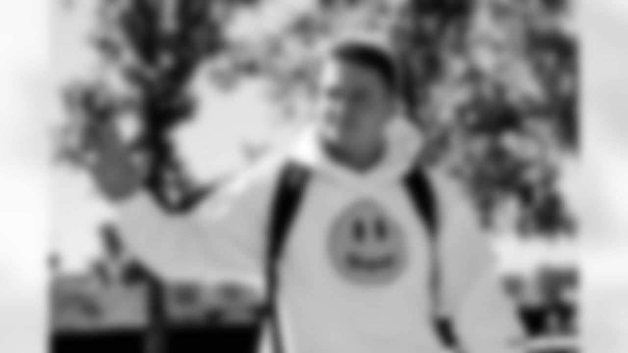Albert Okwuegbunam arrives at the stadium before the Broncos' Week 4 game against the Baltimore Ravens on October 3, 2021 at Empower Field at Mile High in Denver, Colorado. (Photo by Ben Swanson)