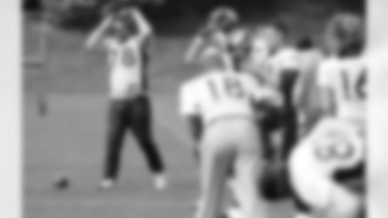 Fox watches the tight ends go through a drill.