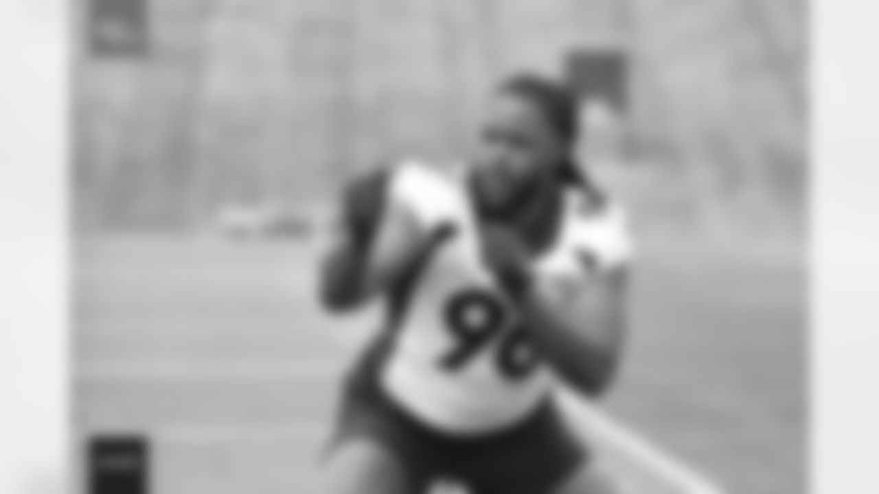 Matt Henningsen, Mike Purcell, Dre'Mont Jones, Eyioma Uwazurike, Jonathan Harris, Marquiss Spencer, Marcus Dixon, McTelvin Agim, DeShawn Williams, A.C. Carter, D.J. Jones during OTAs on Monday, May 23, 2022 at UCHealth Training Center in Denver, Colorado. Photo by Gabriel Christus