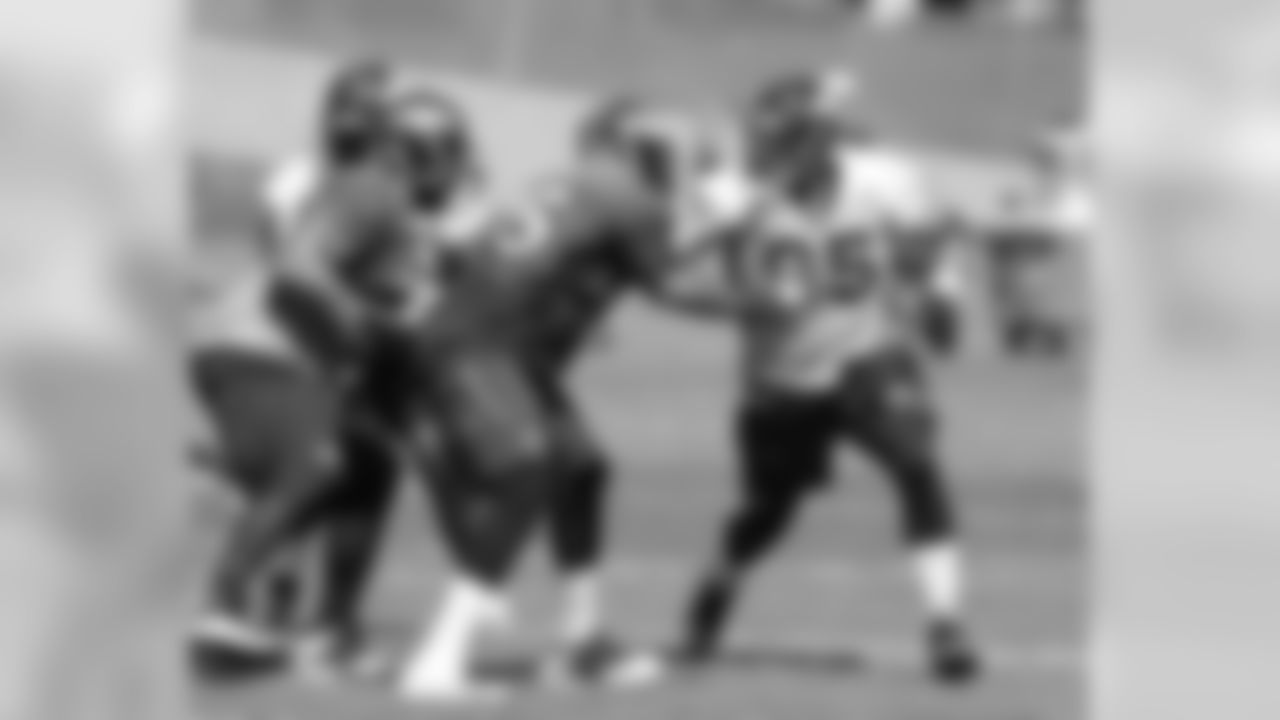 Ware and Clady work on hand placement and leverage off to the side of a special teams drill.