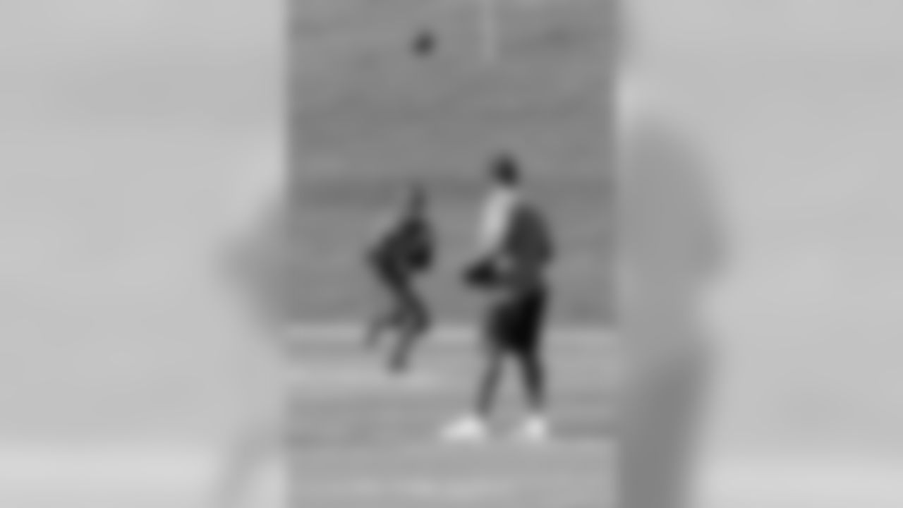 Woodson works with Moore on hand placement to catch passes near the ground.
