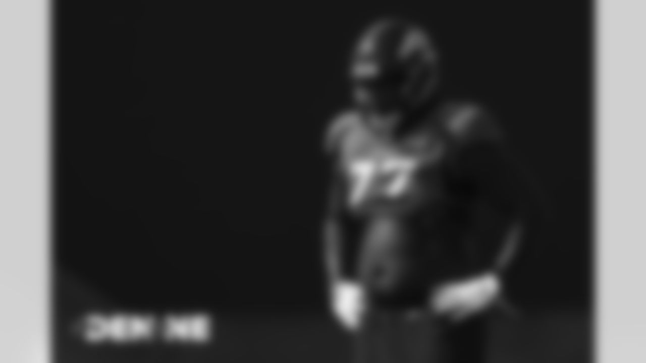 Timmy Jernigan, Alexander Johnson and Bradley Chubb during practice at UCHealth Training Center on October 10, 2020. (Photo by Ben Swanson)