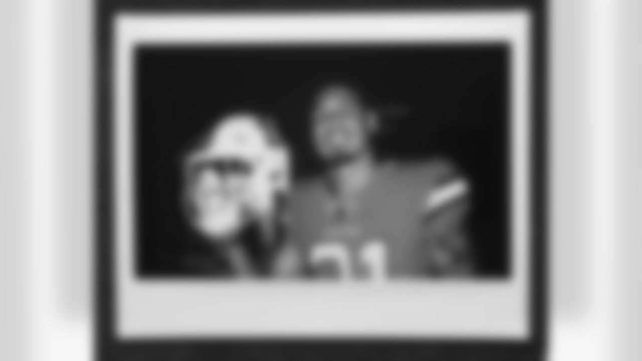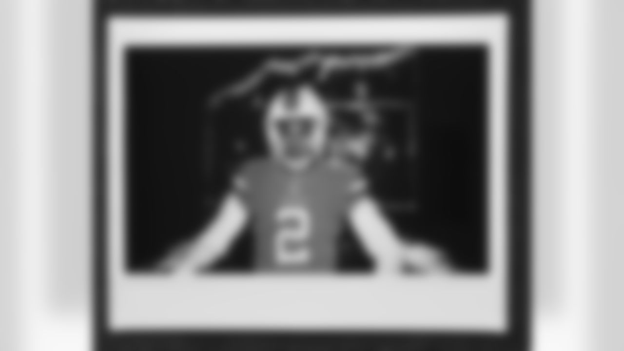 Justin Simmons in an instant film photo during a video production shoot for the unveiling of the alternate helmet at Centura Health Training Center on June 20, 2023 in Englewood, Colorado. Photo by Joe Abdellah / Denver Broncos