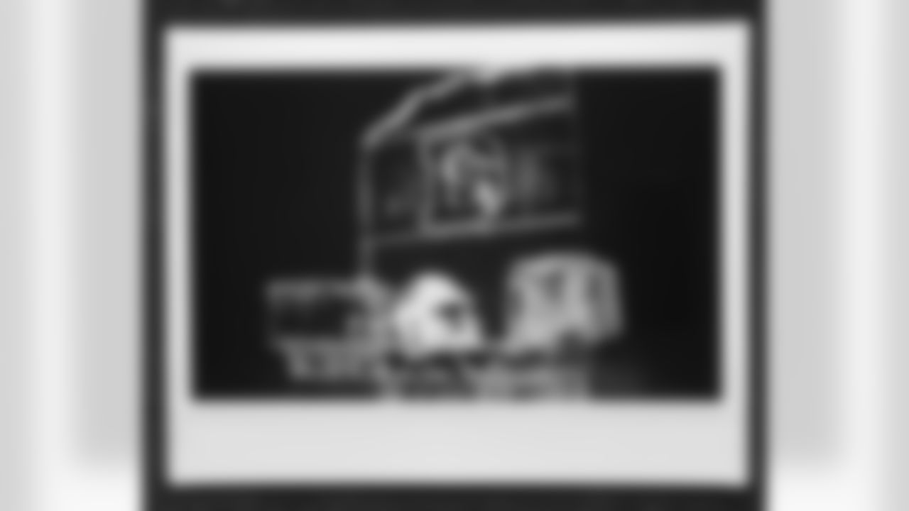 An instant film photo during a video production shoot for the unveiling of the alternate helmet at Centura Health Training Center on June 20, 2023 in Englewood, Colorado. Photo by Joe Abdellah / Denver Broncos