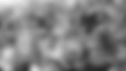John Elway gives head coach Gary Kubiak the game ball after Sunday's season opening win.